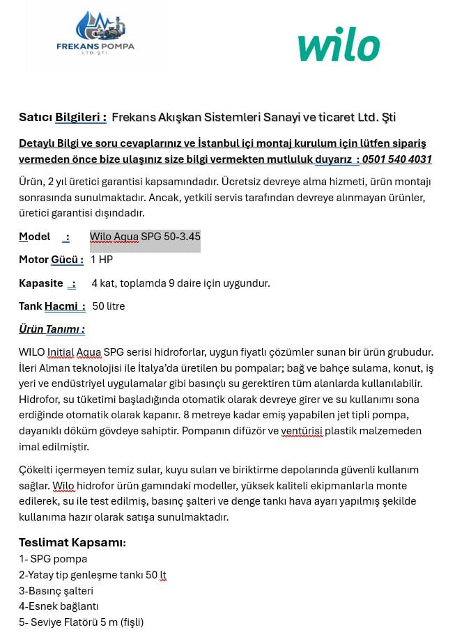 Initial aqua SPG 50-3.45 50 LT TANKLI SET HİDROFOR 4KAT 9 DAİRE