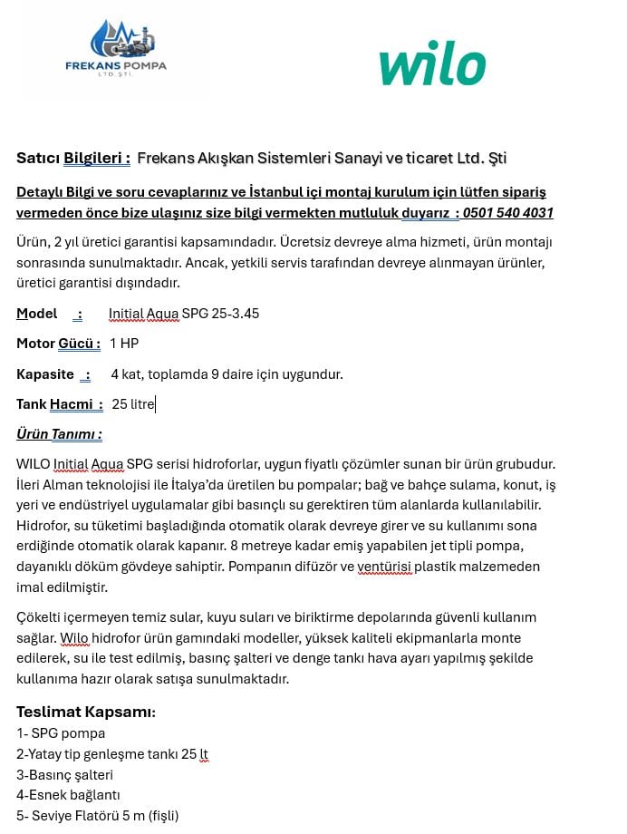 Initial Aqua SPG 25-3.45 25LT TANKLI SET HİDROFOR 4KAT 9DAİRE