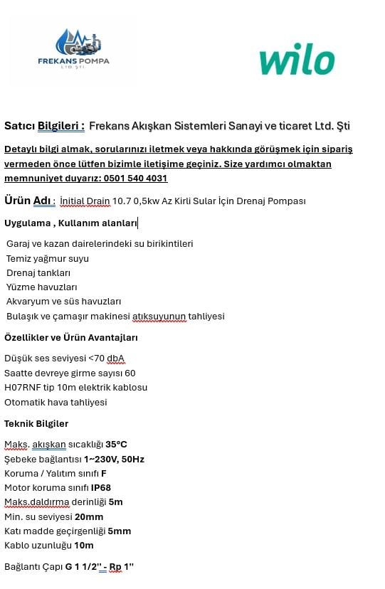 İnitial Drain 10.7 0,5kw Az Kirli Sular İçin Drenaj Pompası