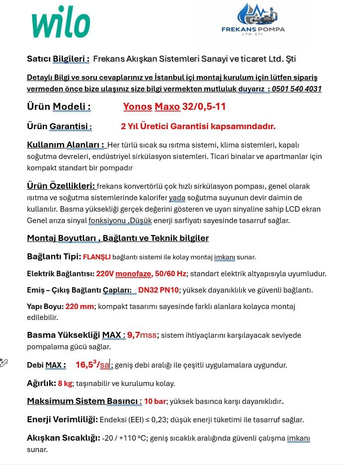 WILO YONOS MAXO 32/0,5-11 FREKANS KONVERTÖRLÜ SIRKÜLASYON POMPASI