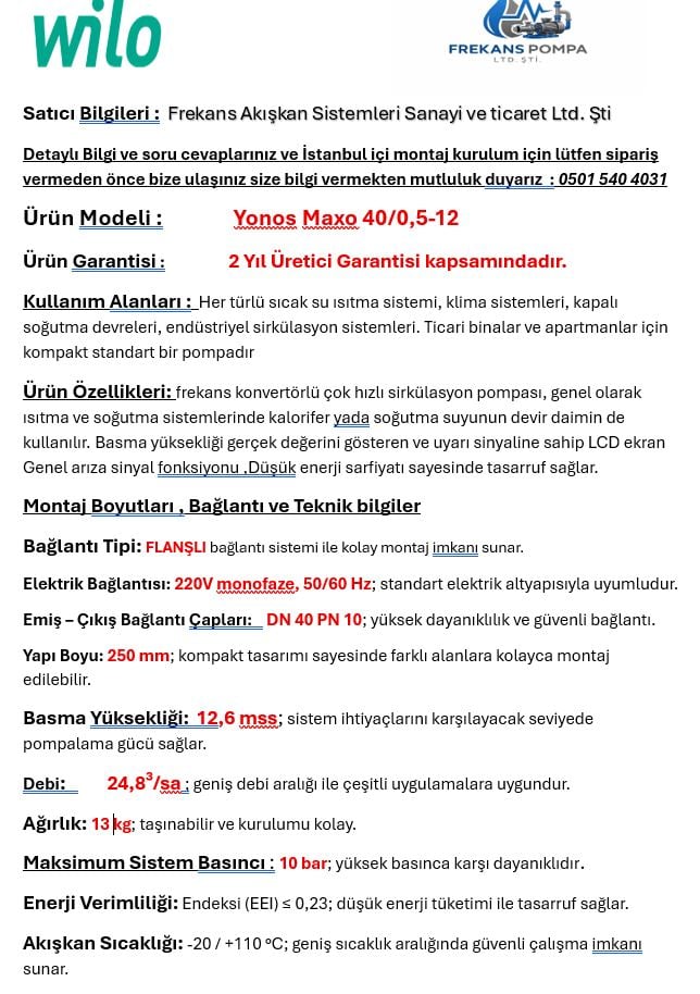 WILO YONOS MAXO 40/0,5-12 FREKANS KONVERTÖRLÜ SIRKÜLASYON POMPASI