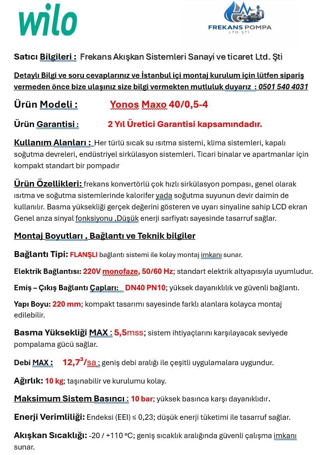 WILO YONOS MAXO 40/0,5-4 FREKANS KONVERTÖRLÜ SIRKÜLASYON POMPASI