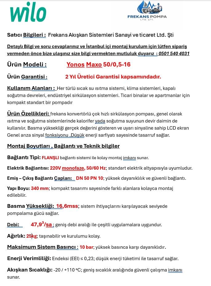 WILO YONOS MAXO 50/0,5-16 FREKANS KONVERTÖRLÜ SIRKÜLASYON POMPASI