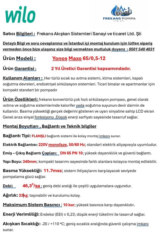 WILO YONOS MAXO 65/0,5-12 FREKANS KONVERTÖRLÜ SIRKÜLASYON POMPASI