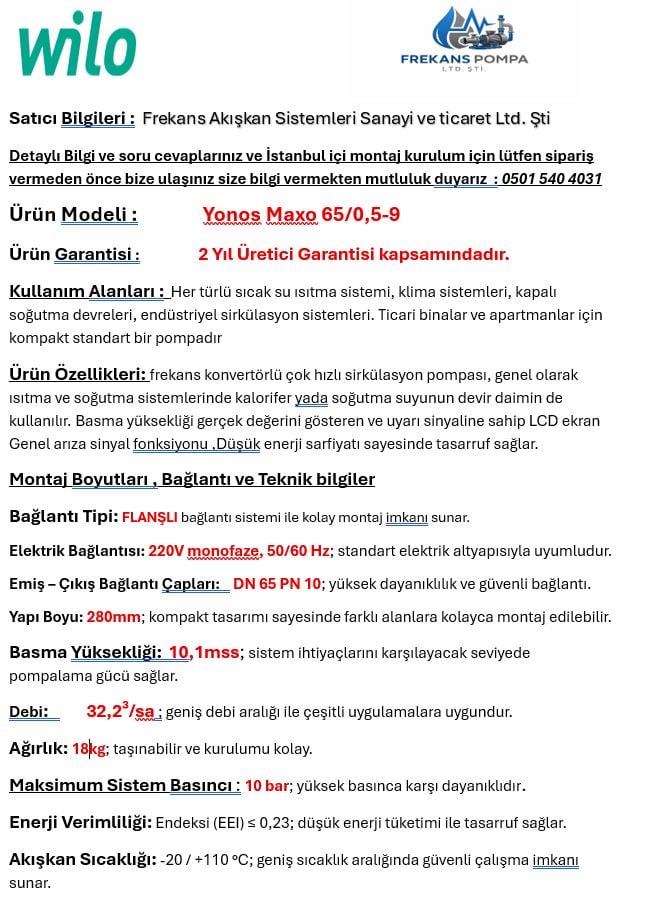 WILO YONOS MAXO 65/0,5-9 FREKANS KONVERTÖRLÜ SIRKÜLASYON POMPASI